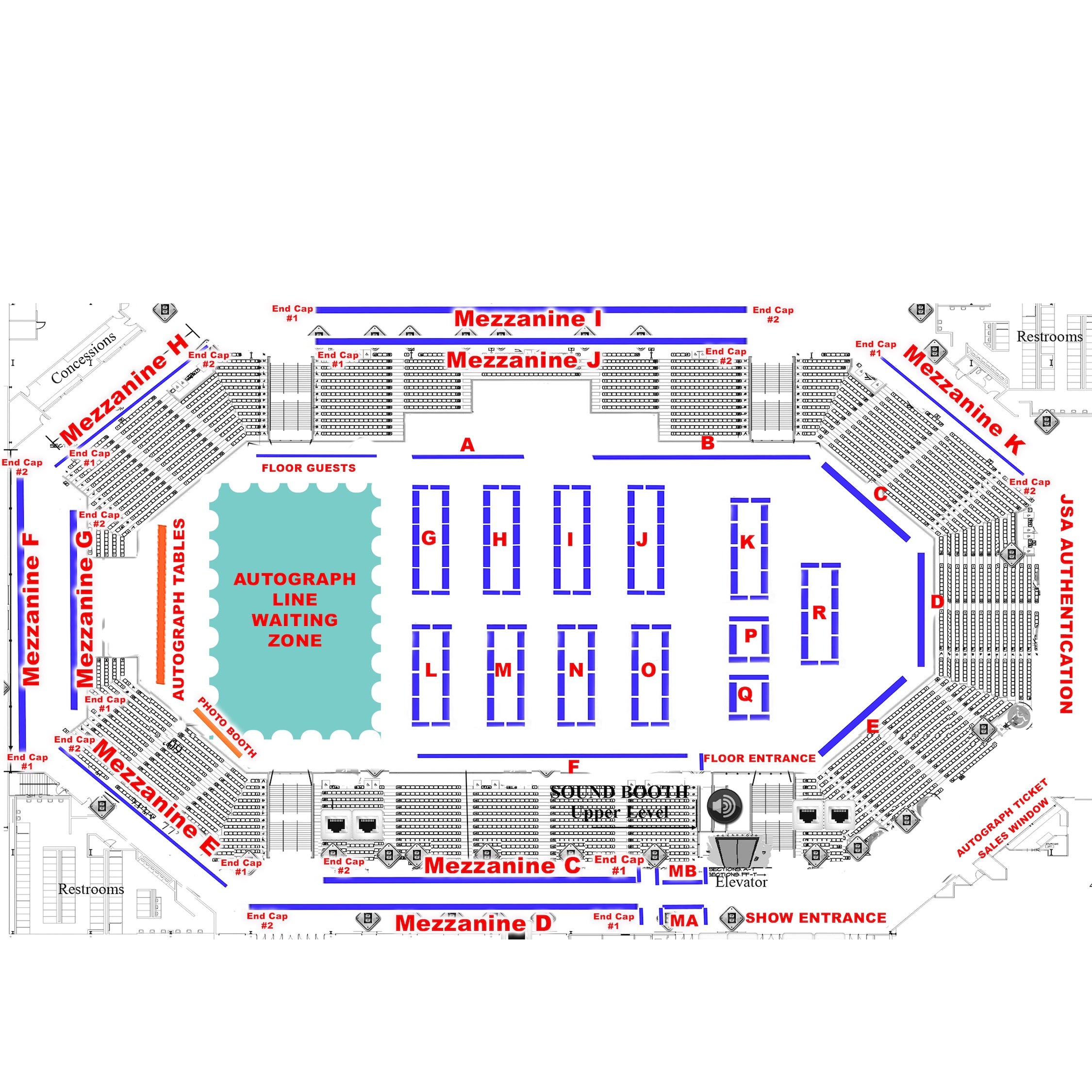 We are switching things up with the layout to improve the flow of the show and create more room for everyone's benefit. We are bringing the autographs back to the show floor how it was in 2021 & 2022. This will allow much more space for people to wait for their numbers to be called and also allow customers to walk the show floor while waiting for their autographs. We expanded the mezzanine level to have dealer tables wrapped around the permitter. We did have to remove approximately 50 floor tables so if you want your previous floor location, book ASAP as tables will not be held beyond April 1st!
